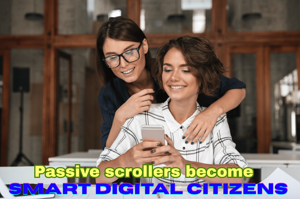 Passive scrollers become smart digital citizens by developing improved judgment, combating false information, and cultivating the ability to make informed decisions about what to share or consume, as well as adopting healthy screen time habits.