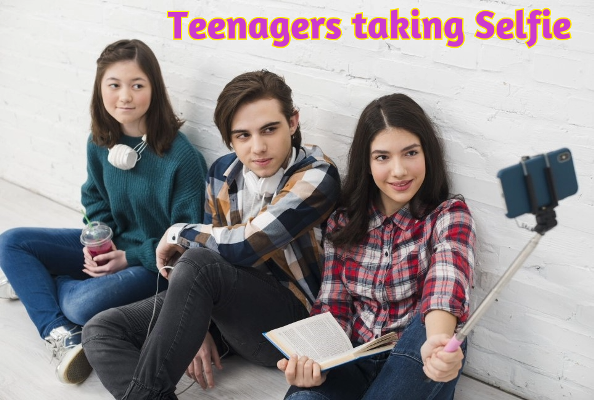 Teenagers taking Selfie while Studying