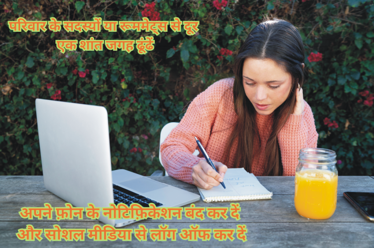 अपने फ़ोन के नोटिफ़िकेशन बंद कर दें और सोशल मीडिया से लॉग ऑफ कर दें